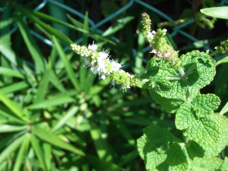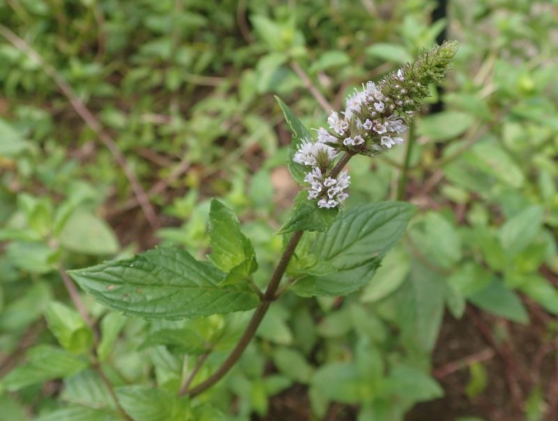 リンゴの香りがし、茎先と葉腋から出る穂状花序に白い花が咲く