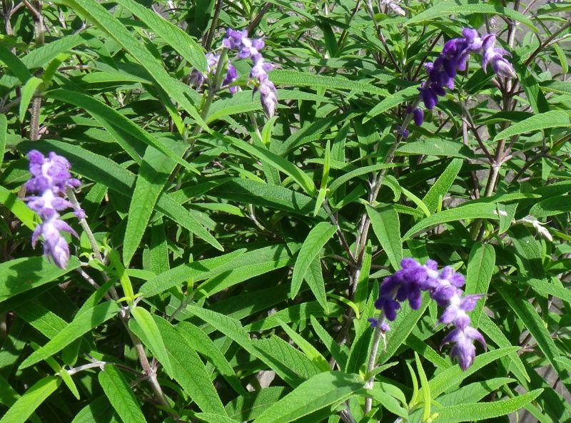 枝先に総状花序を出し、淡紫色の唇形花を多数つける
