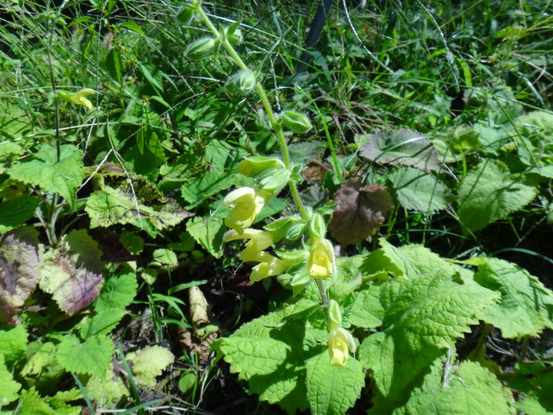 茎も葉も軟毛で覆われ、葉は卵形で縮緬状のしわがあって