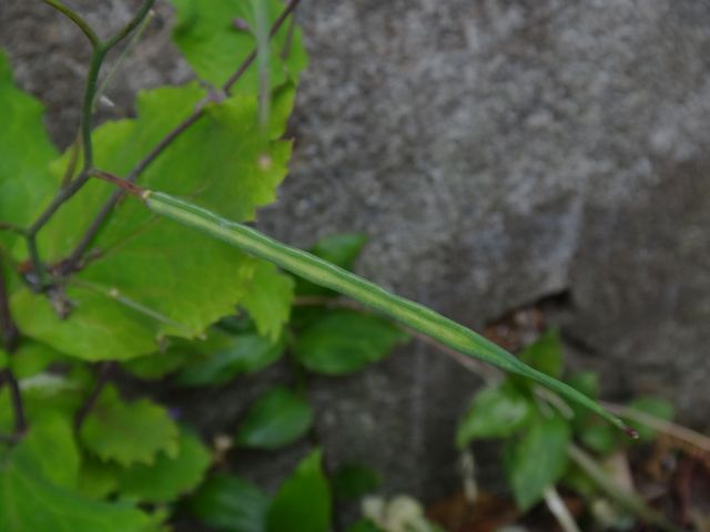 果実は長さ約10センチの長角果で、4つの稜がある。