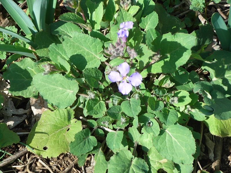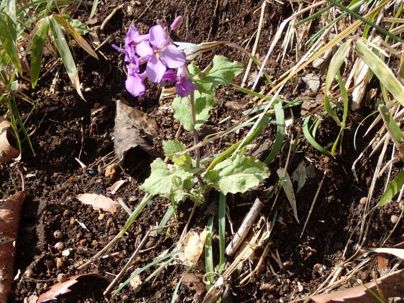 紫色の花弁が4枚、雄しべが6本あり、葯は黄色い。(2017/3/10)