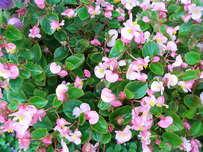 耐寒性があり、葉は偏心形で互生し、茎の先に数個の淡紅色の花を咲かせ、 雄花は2枚の萼と2枚の花弁を開き、雌花は萼を2枚もつが花弁は持たない