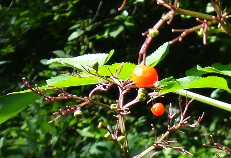 丸い果実が赤〜橙色に熟す。
