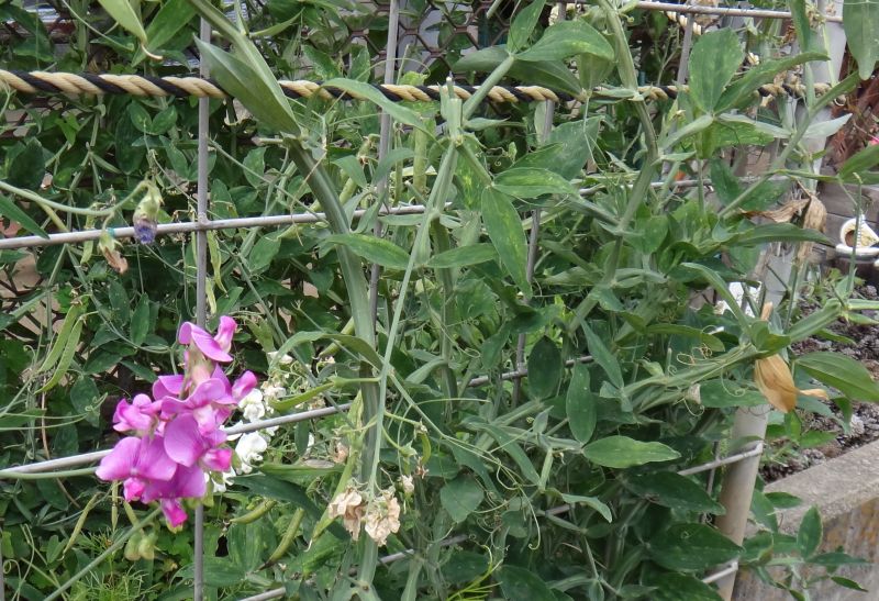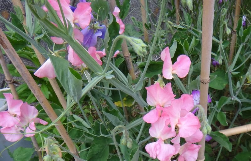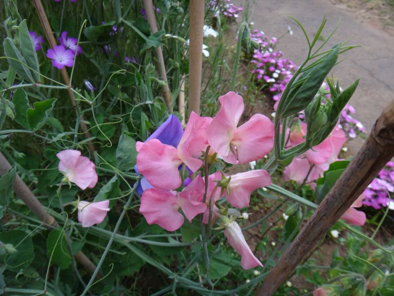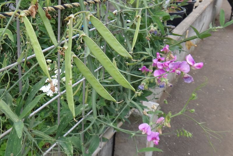 巻きひげで絡むが、巻きひげのない矮生種もある。