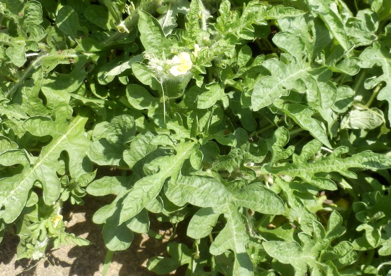 雌雄異花で、葉腋に先の5裂した黄色い花が1個咲く。