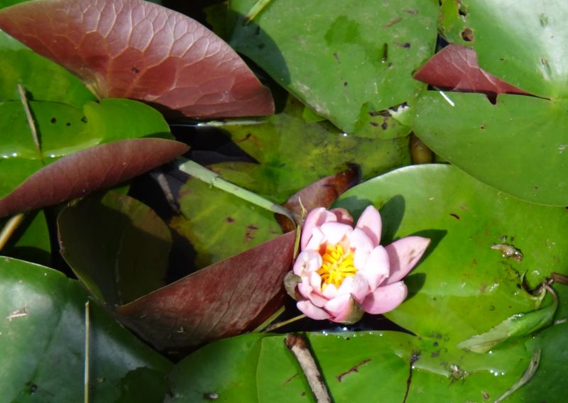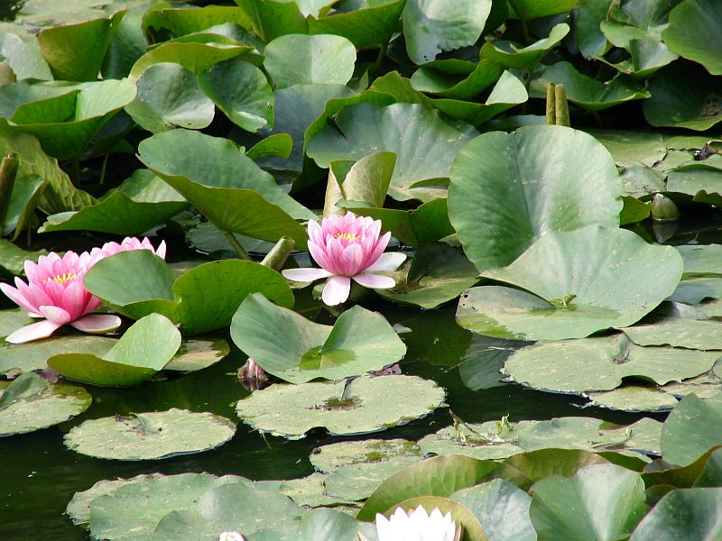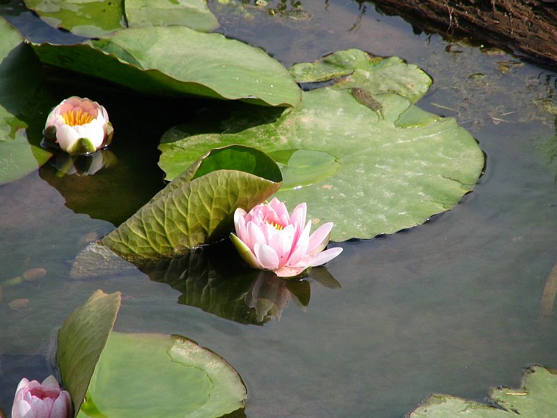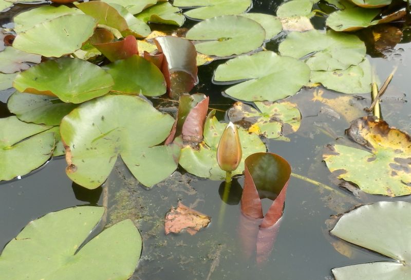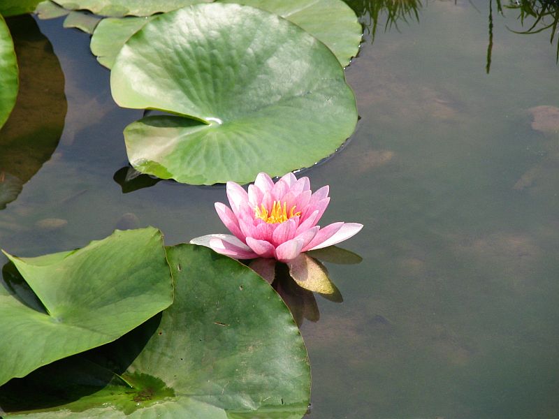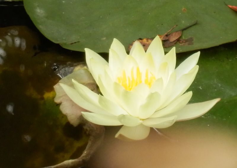 夏に直径5〜10センチの薄紅色や白、黄色の花を水面に浮かべる。