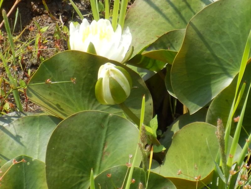 ヒツジグサ:スイレンの1種で花は白い。日本に自生するスイレンはヒツジグサのみ。