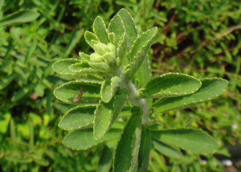 葉は長楕円形で先がややとがり、鋸歯があって対生するが、