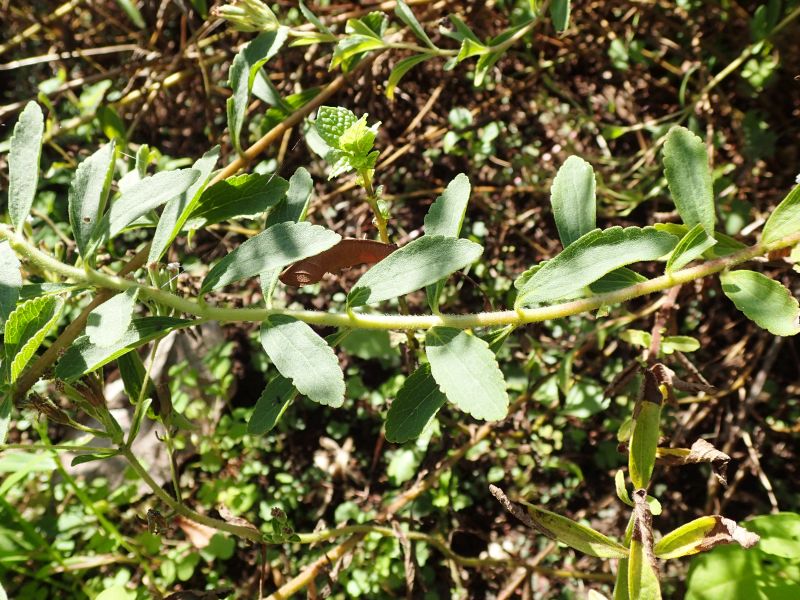 葉は長楕円形で鋸歯があり、対生する。(2016/10/15)