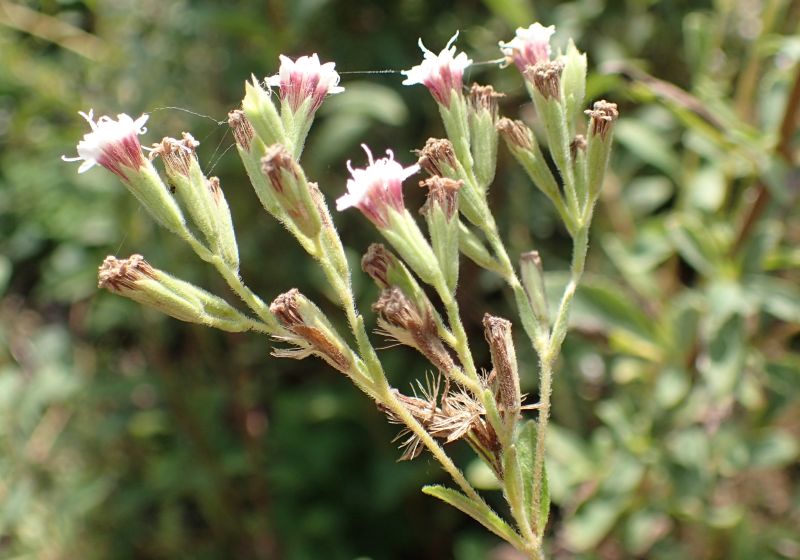筒状花のみで構成され、花冠は5裂し、雄しべが長く突き出る。