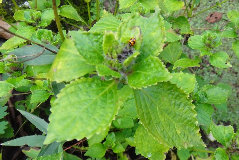 葉は広卵形で鋸歯がある。(2017/10/18)