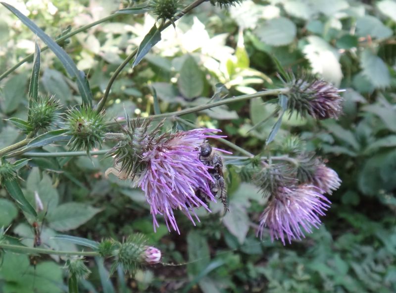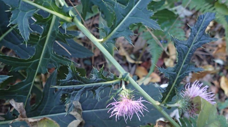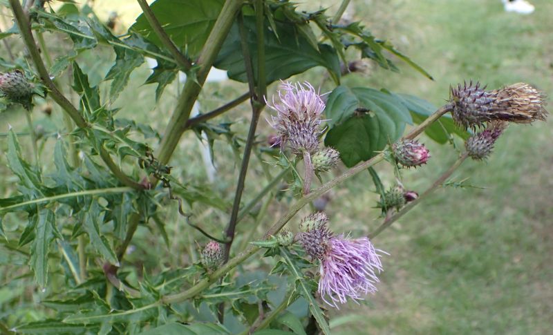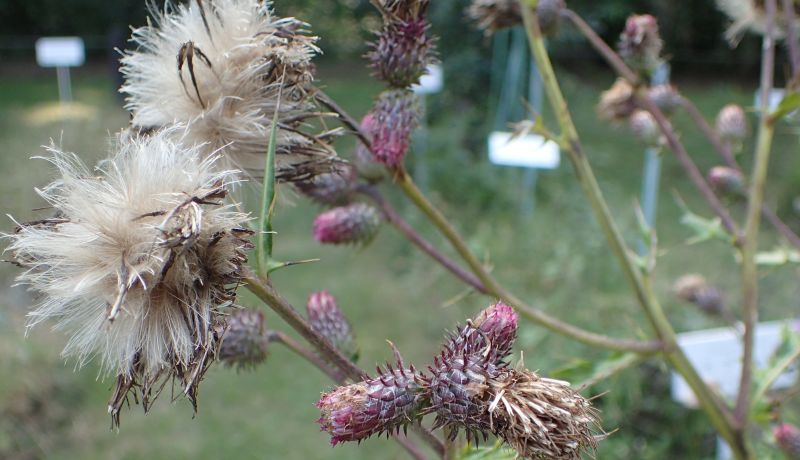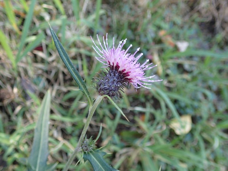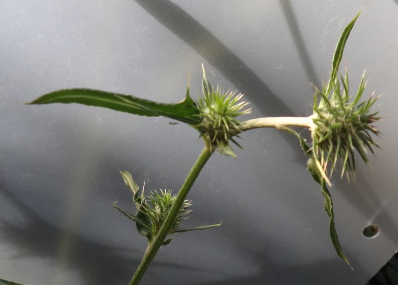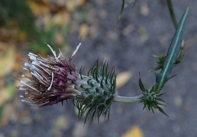 総苞は少しふくらんだ鐘状で、総苞片の先は大きな棘になって反り返る。