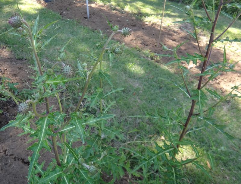 葉は細長くて羽状に深裂し、大きい棘があって、互生する。