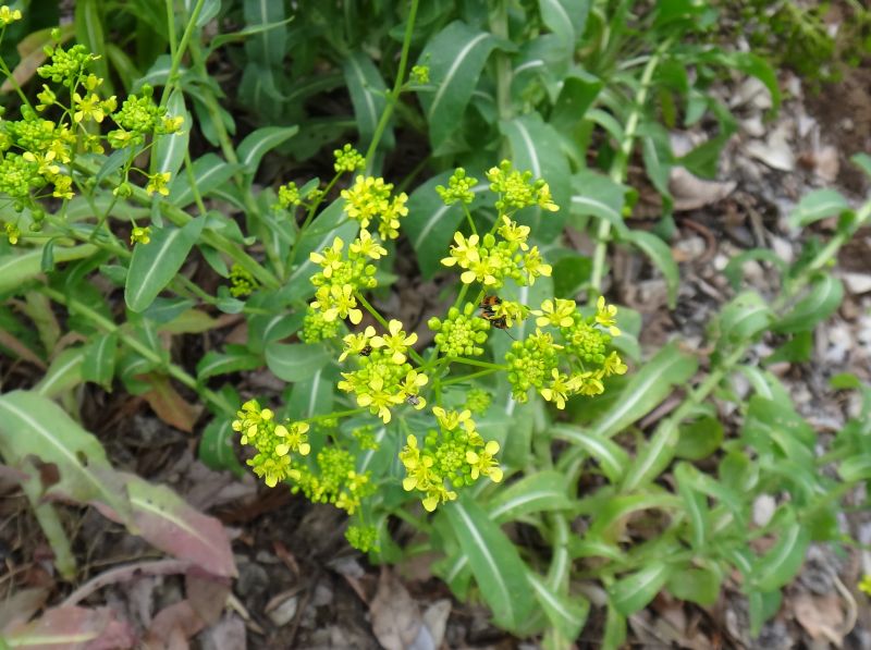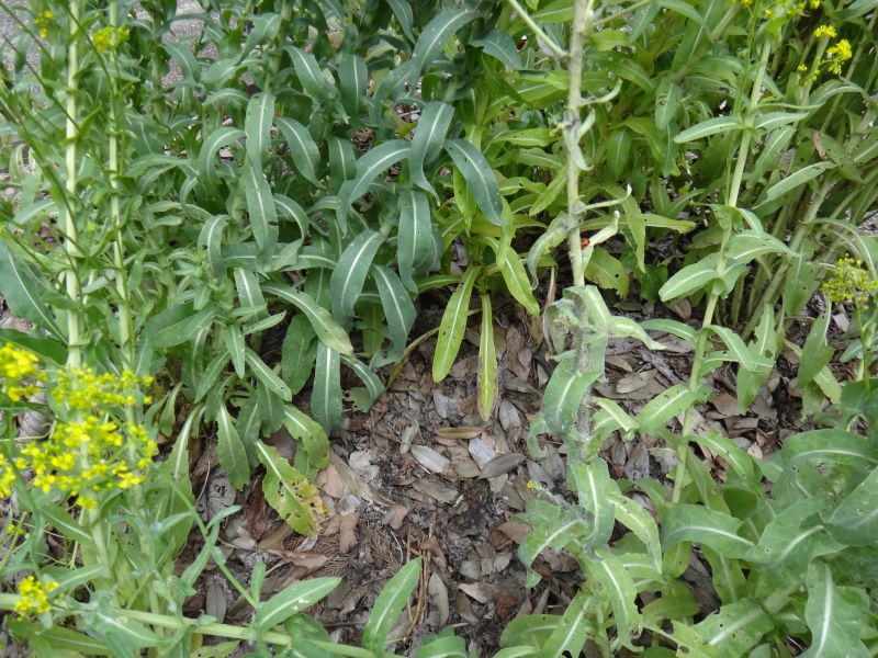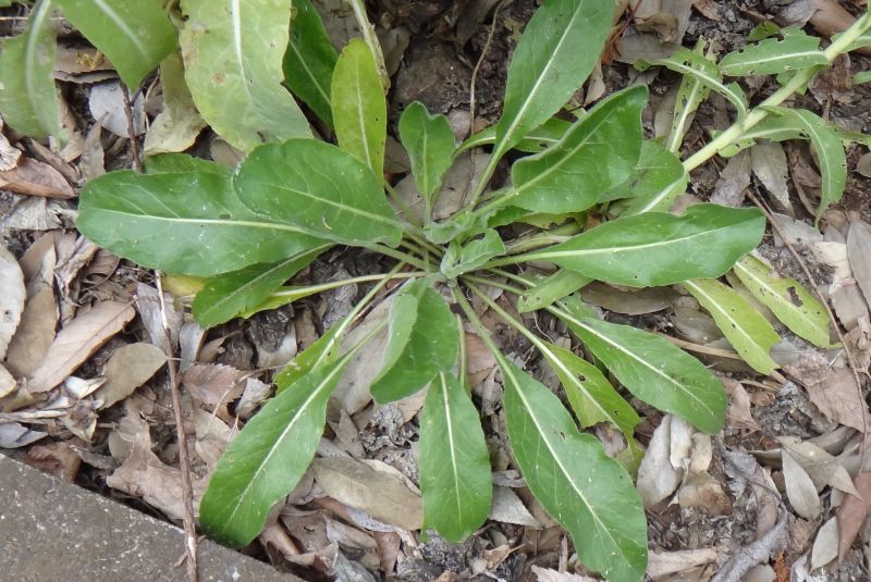茎は直立したのち分枝する。茎葉は茎を抱き、長楕円形で先が尖る。