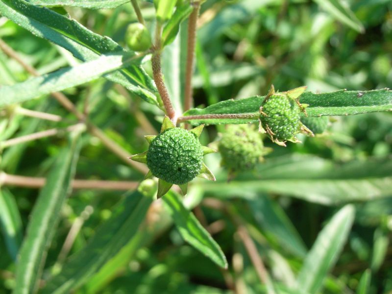 緑色のそう果がまんじゅう形に集まっているのが特徴的である。