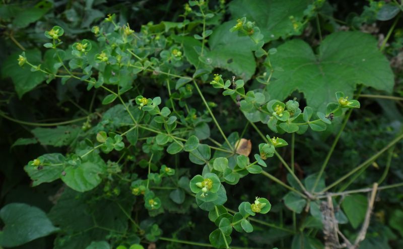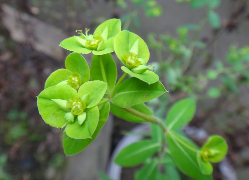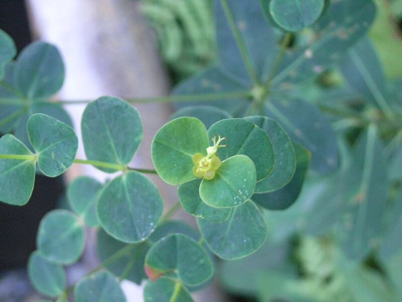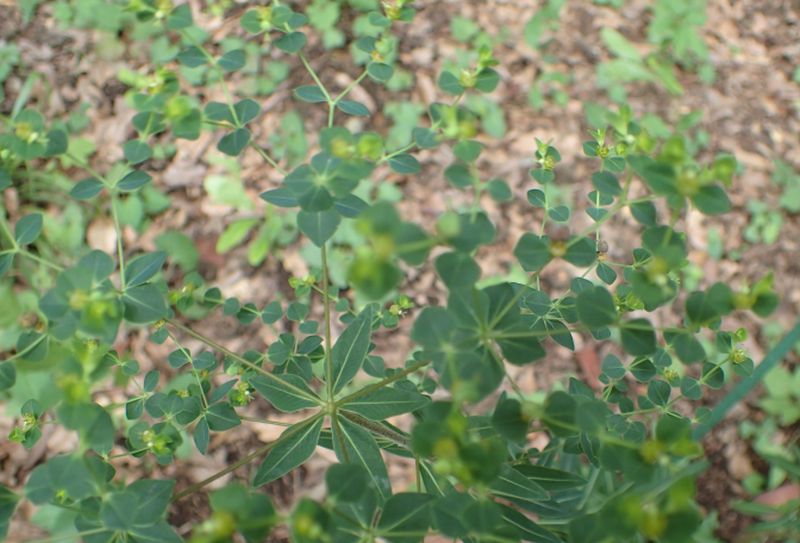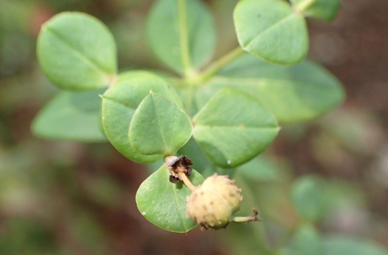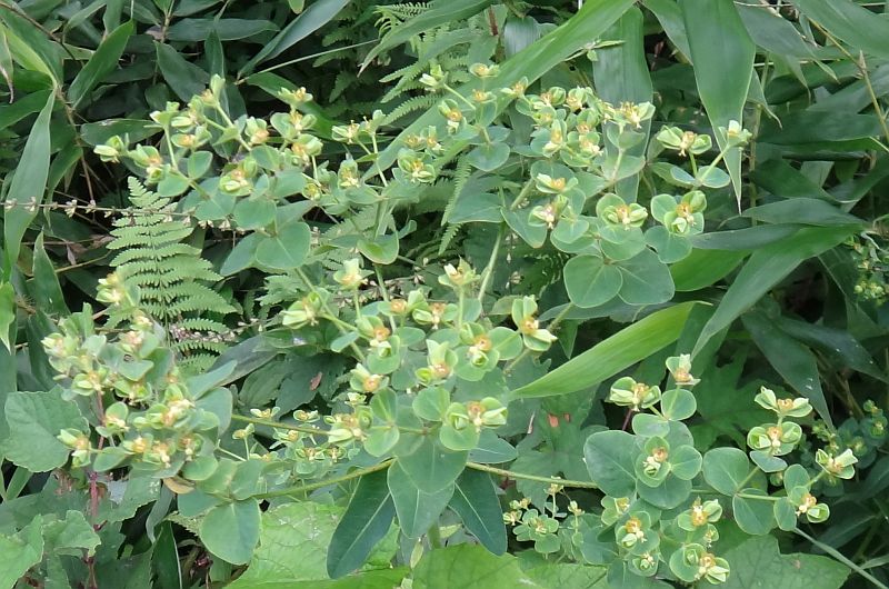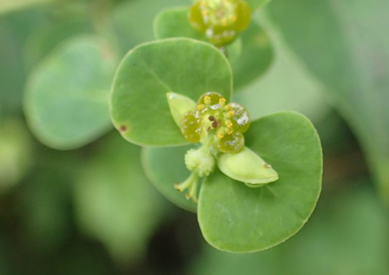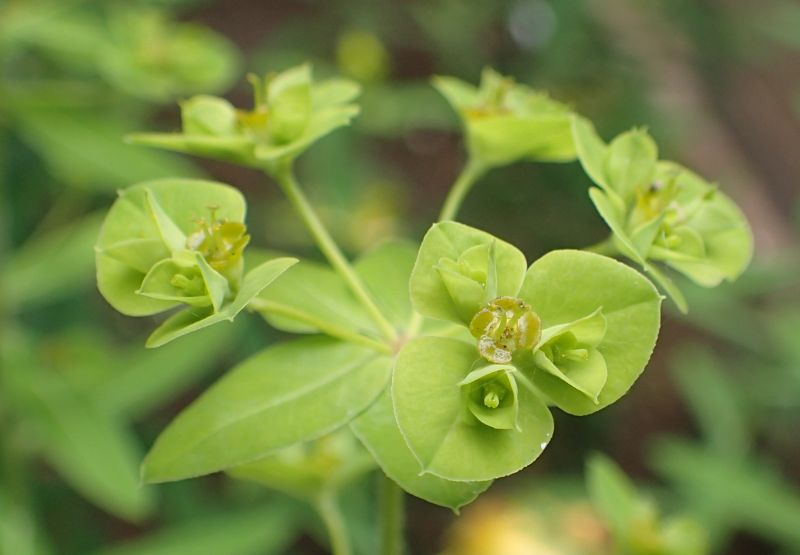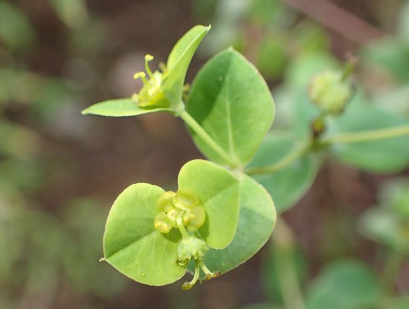 ナツトウダイ:杯状花序の腺体はカニの鋏のように両端が尖る。