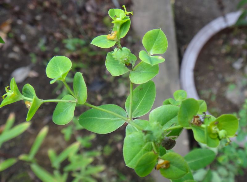 タカトウダイ:杯状花序の腺体は広楕円形。