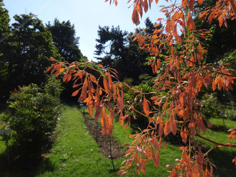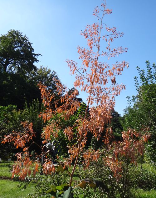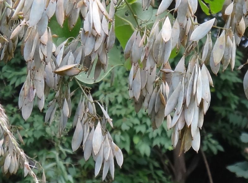 果実は扁平な長楕円形の刮ハであり、黄褐色で、垂れ下がる。