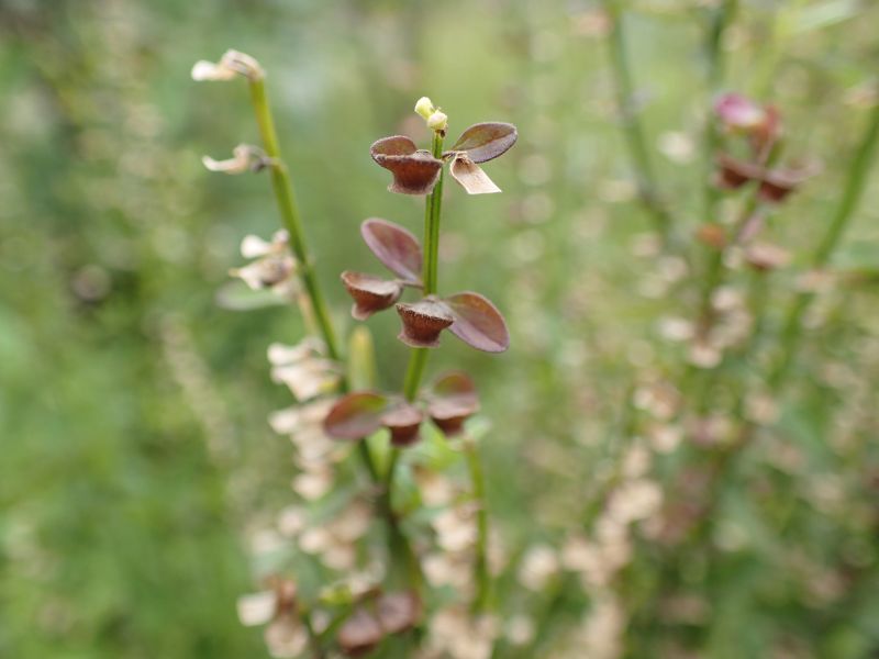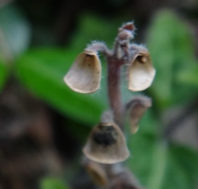 花後に萼の上唇が皿状になり、下唇が鍋状になって、