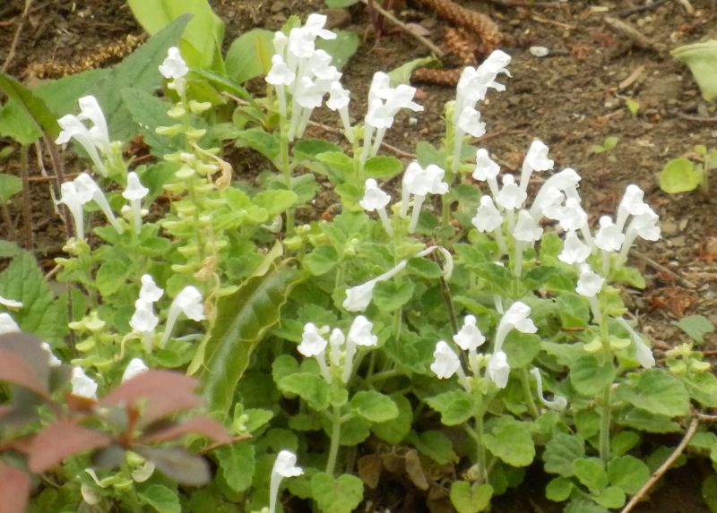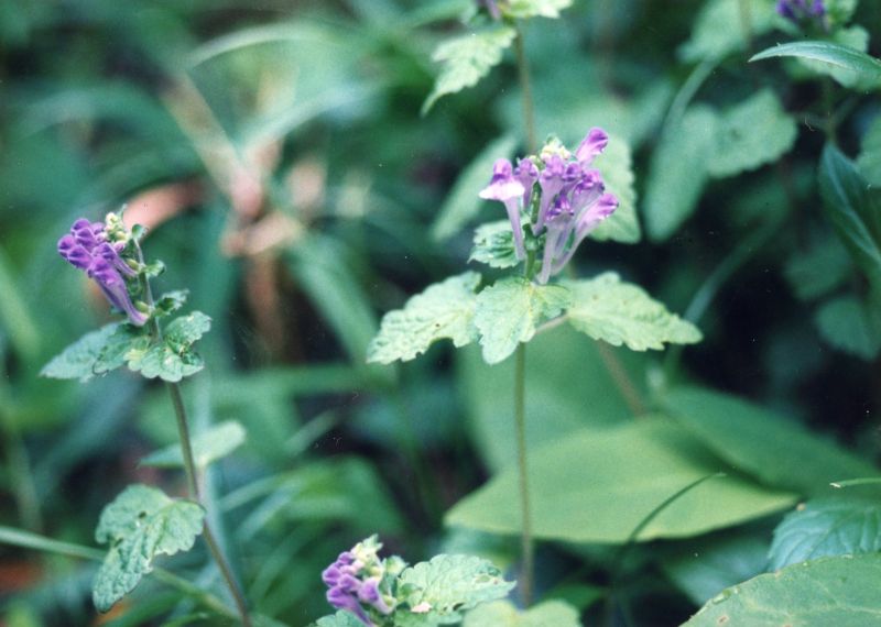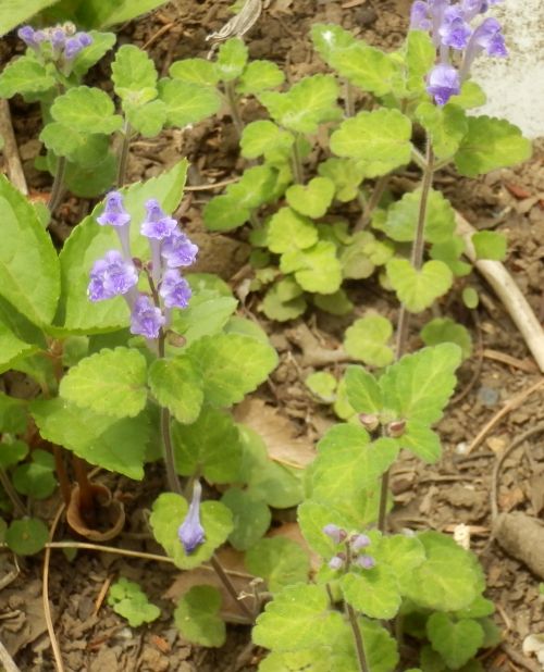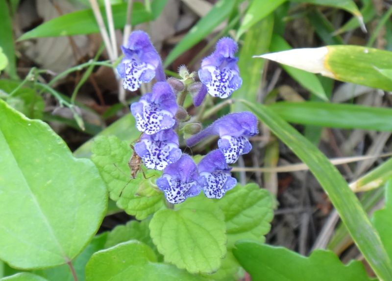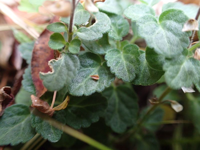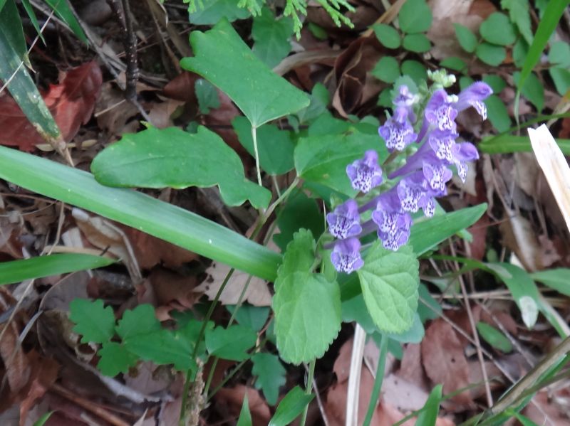 コバノタツナミ :高さ5〜20センチ、葉は1センチの広卵形で毛が多い、鋸歯5〜6対、花は茎先。