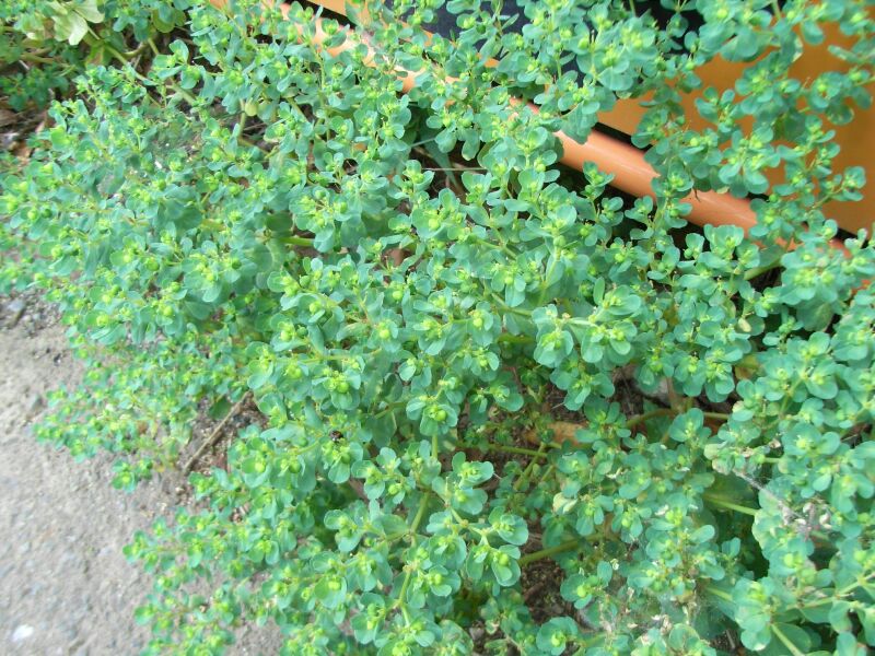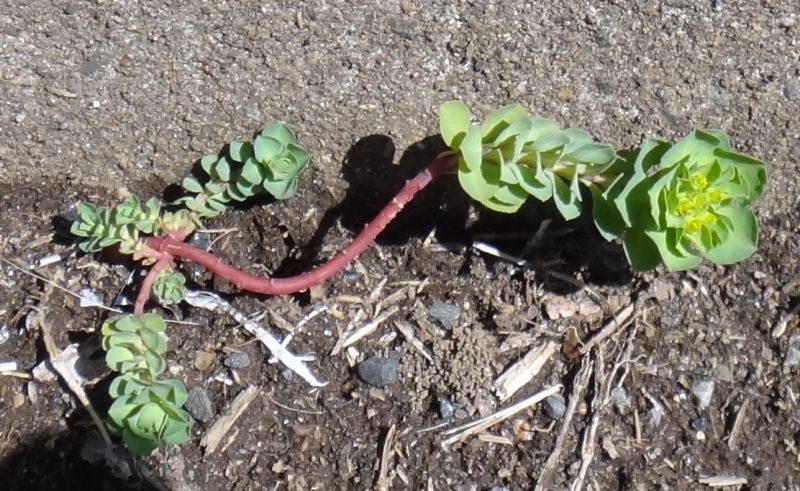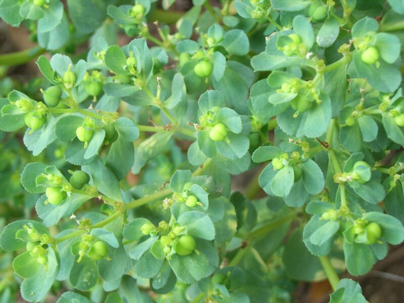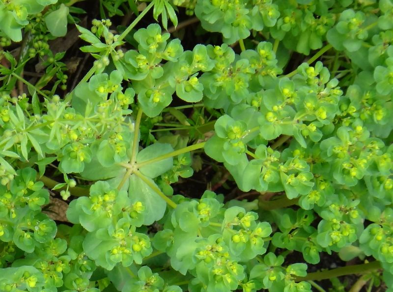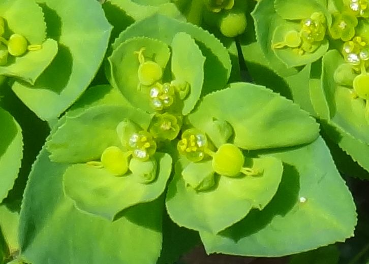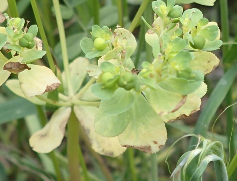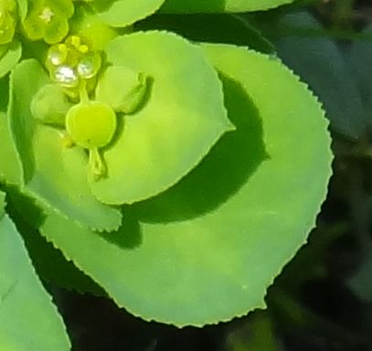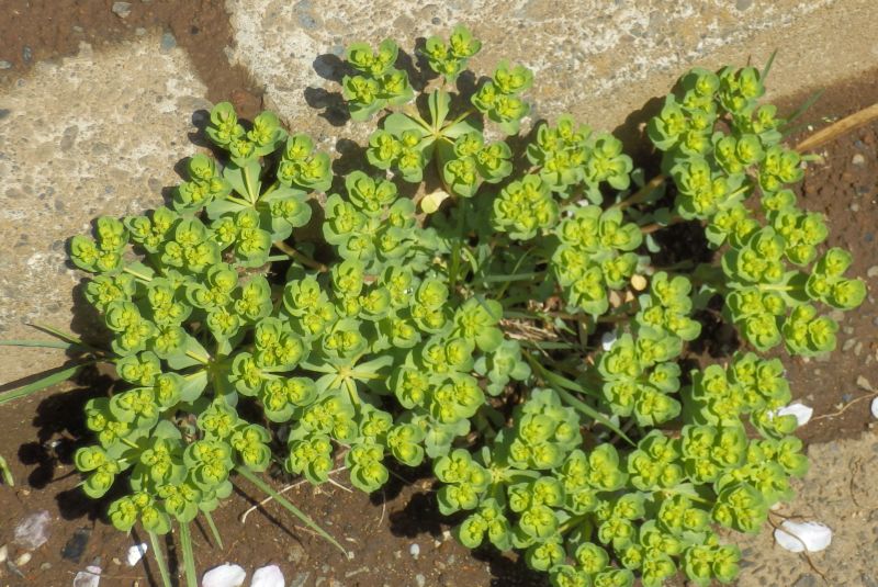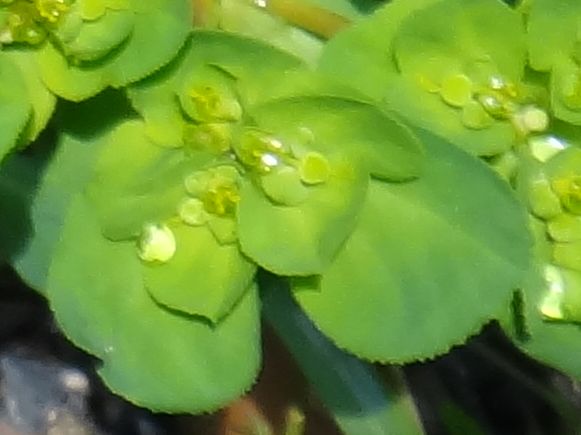 各枝の先に黄緑色の杯状花序が5個ぐらいつく。