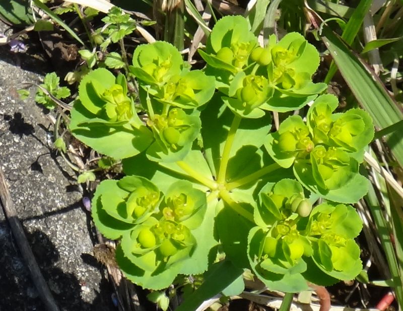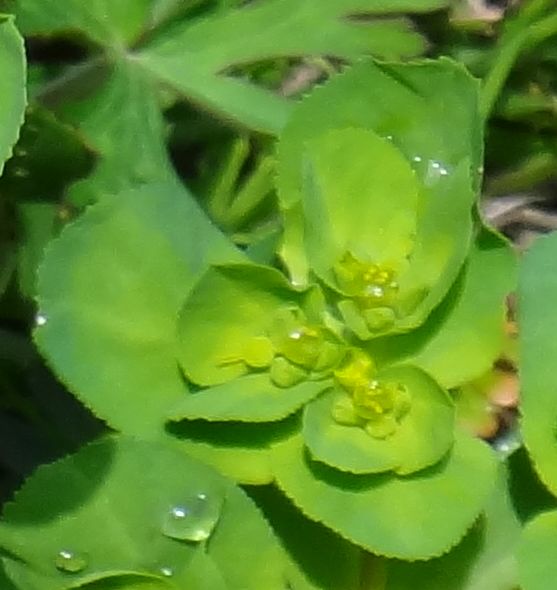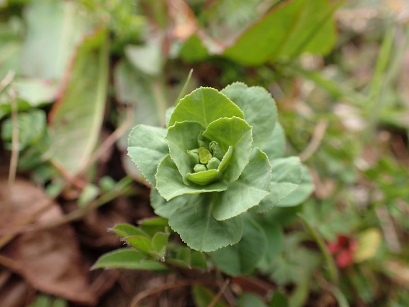 脇にある丸いものは(子供の杯状花序の)蕾?。(2015/4/12)