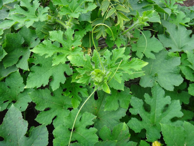 葉は掌状に3浅裂し、ひげづるがのびる。(2016/7/28)