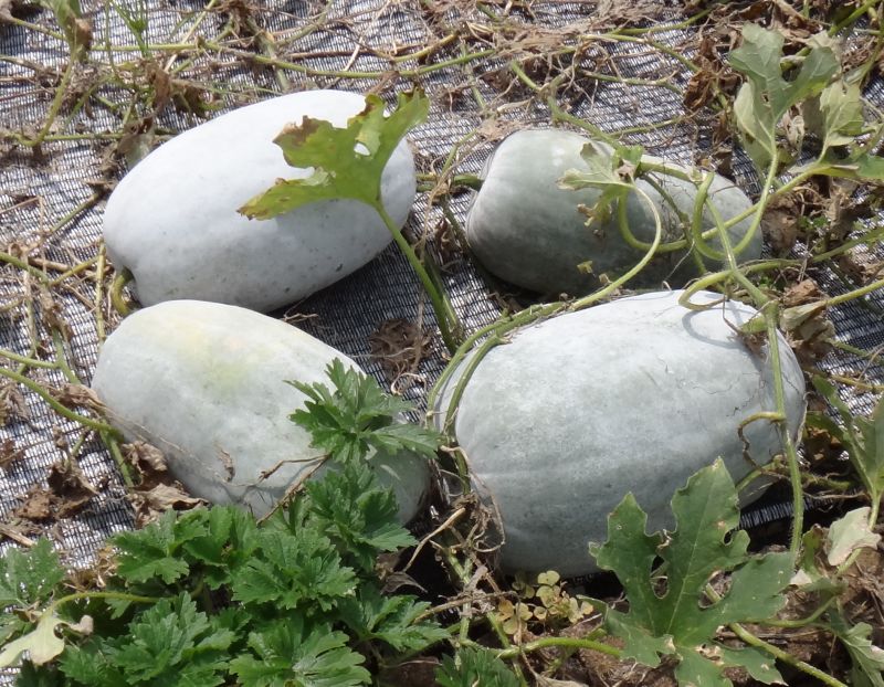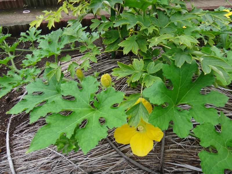 果実は長さ30〜50センチと大きくなり、熟すと白い粉をふく。(2015/9/29)