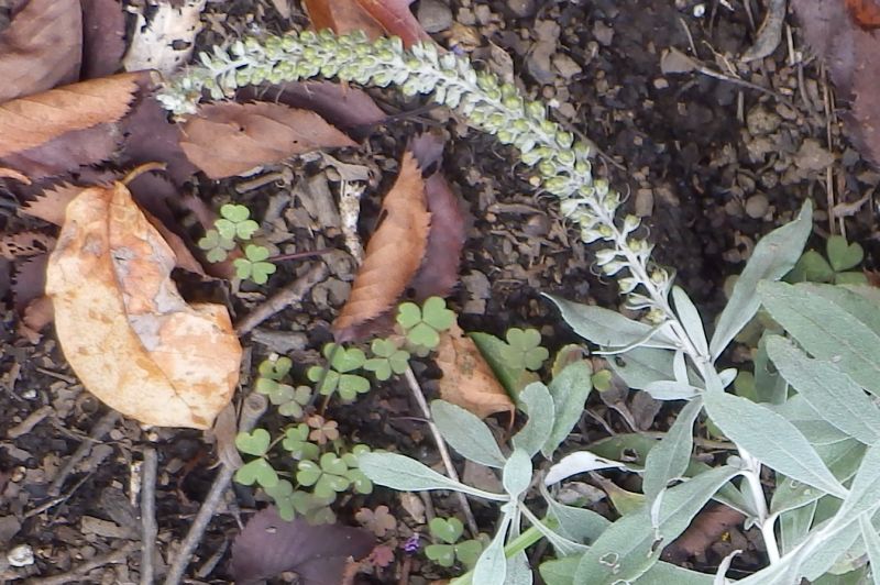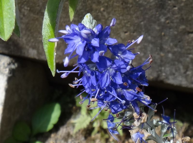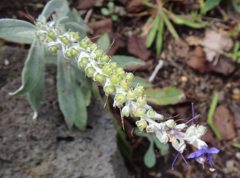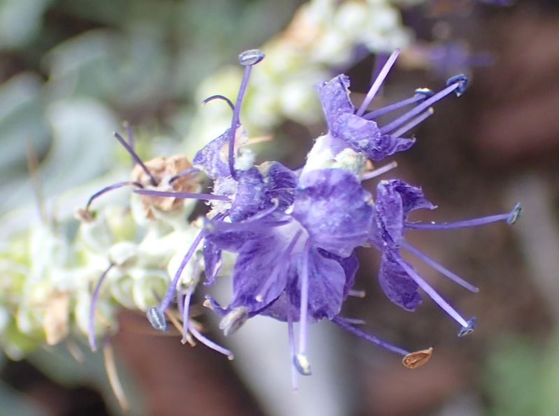 枝先の総状花序に長さ0.5〜1センチで青紫色の小さな花が密集する。
