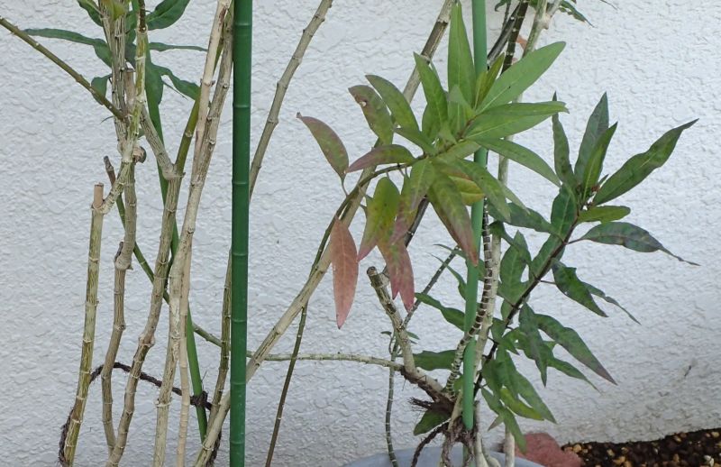 葉は対生する。茎は灰褐色で、葉痕が輪のようになって残る。