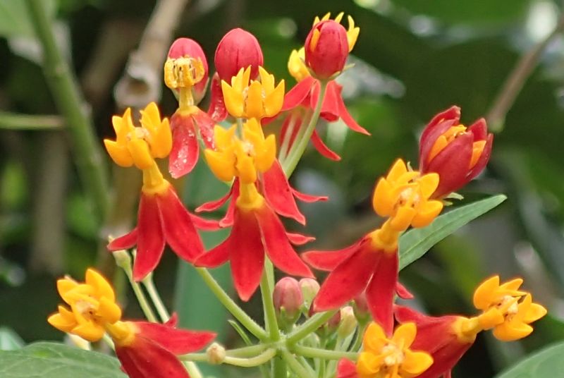 赤い5枚の花弁が開くと、黄色い副花冠が現れる。