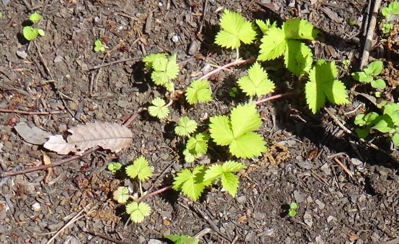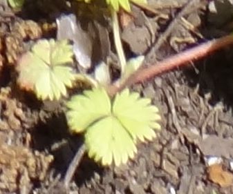3出複葉の小葉は菱状卵形で、鋸歯がある。匐枝で広がる。