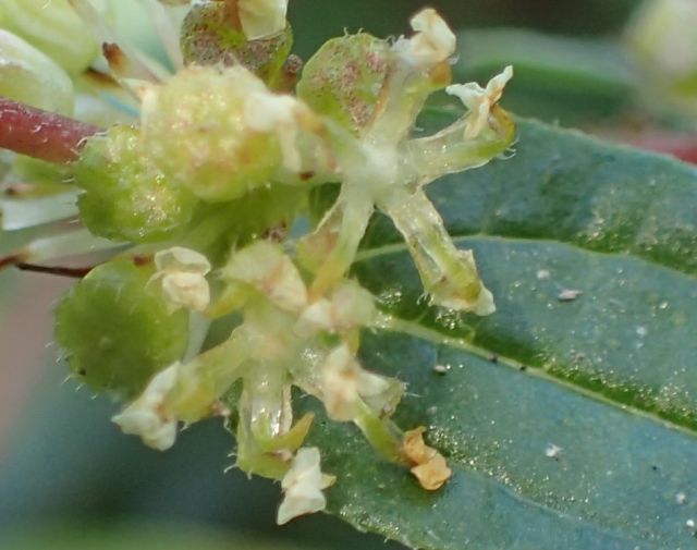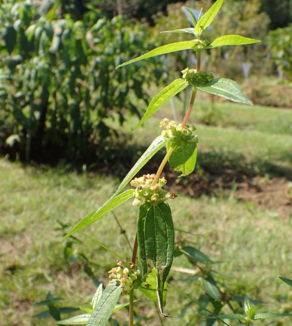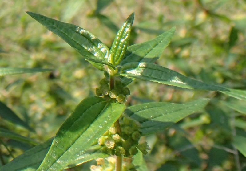 上部の葉腋に雄花序がつく。(2016/10/2)