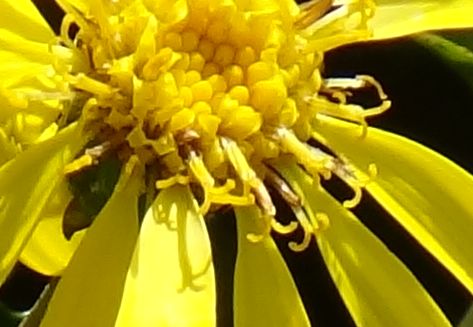 舌状花も筒状花も黄色い。