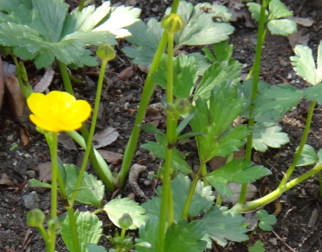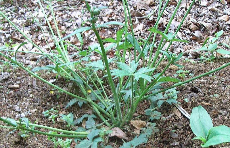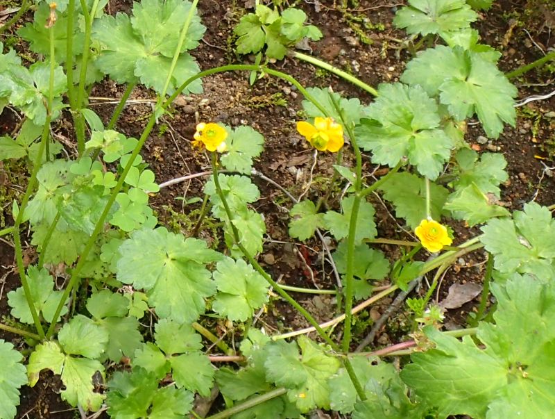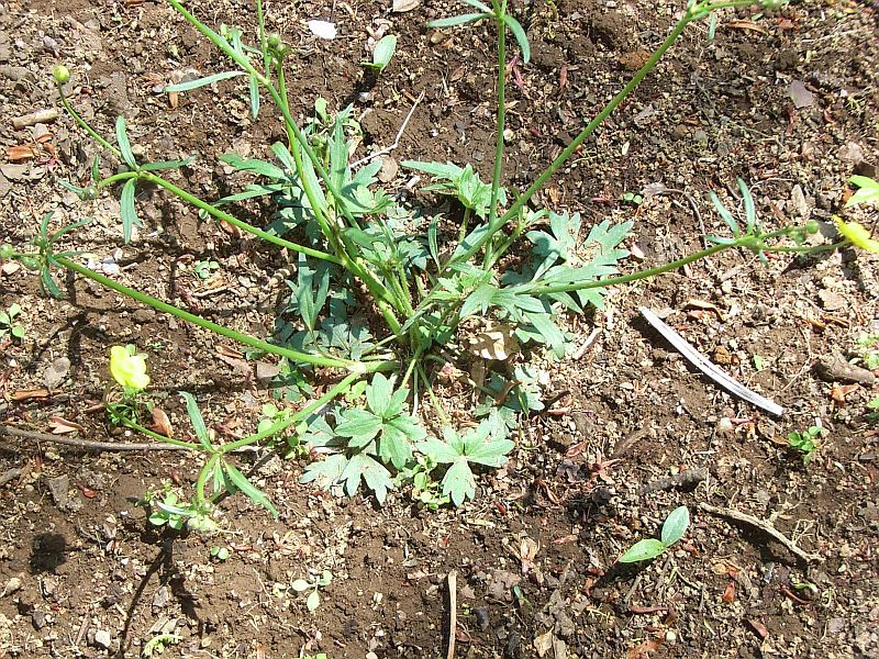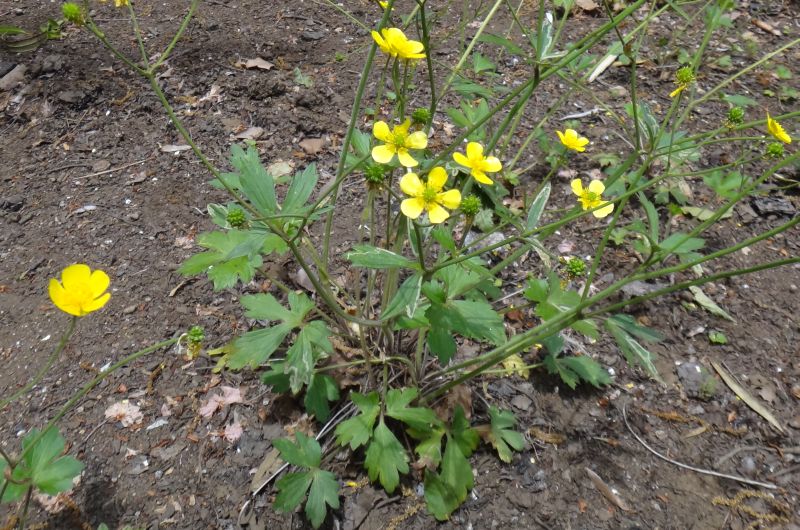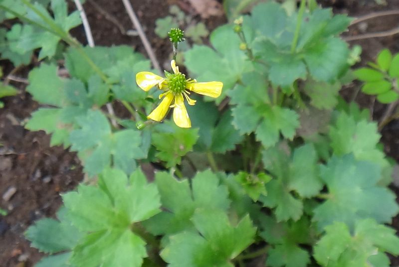 ウマノアシガタ:根生葉が掌状に裂ける。