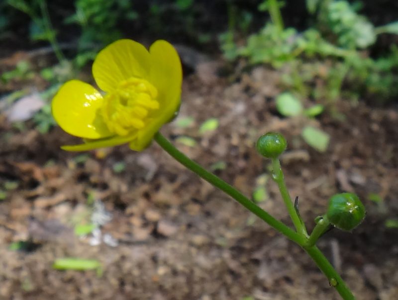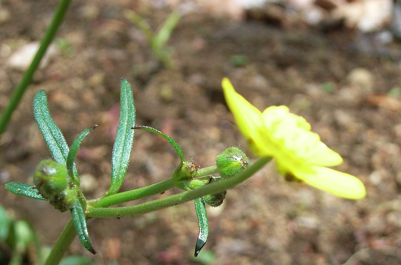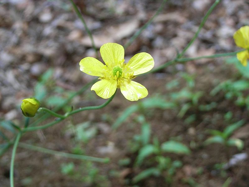 花茎の先に直径1.5〜2センチの黄色い5弁花が単生する。