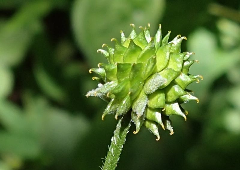 そう果が球状に集まった集合果ができ、そう果には花柱が鈎状に曲がって残っている。(2015/6/15)