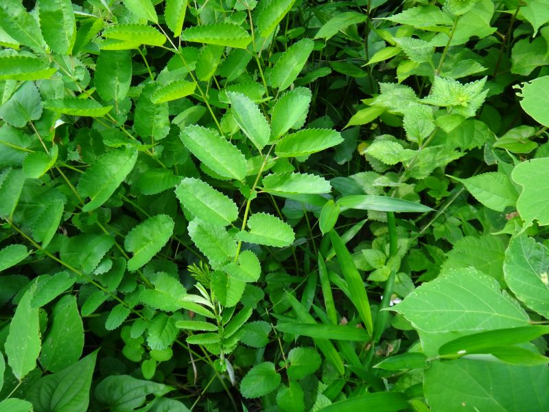 茎につく葉は互生し、上部のものほど小葉の数が少なくなる。