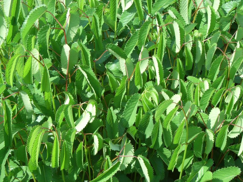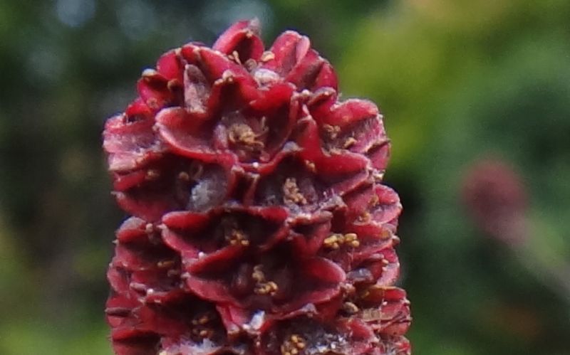 枝先に小さな花が密生した円柱状の穂状花序を作り、