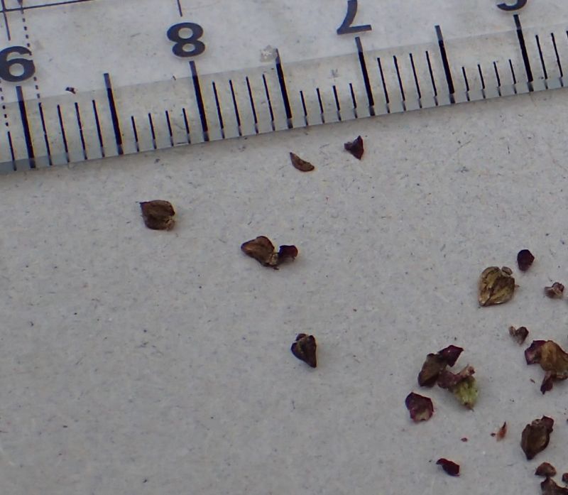 枯れた穂をほぐすと、ゴマ粒より小さな褐色の種子が現れる。