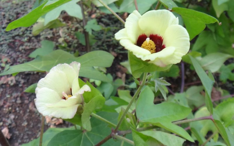 1日花であり、しぼむ頃に赤くなる。花弁の多いものもある。