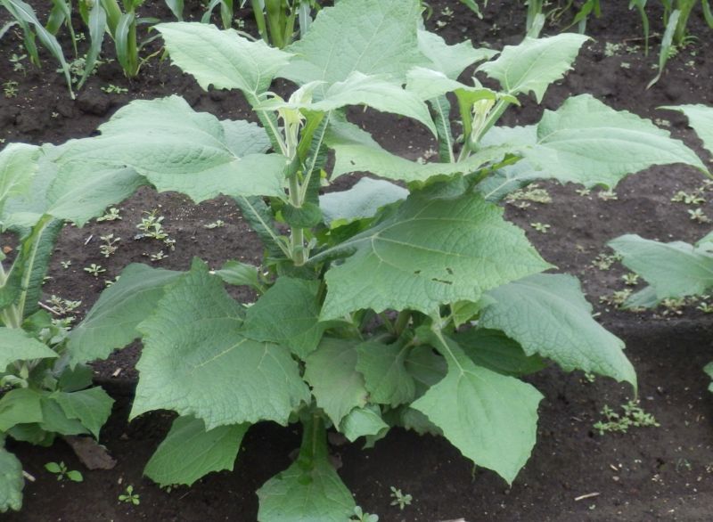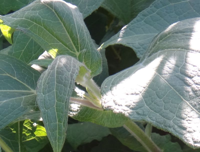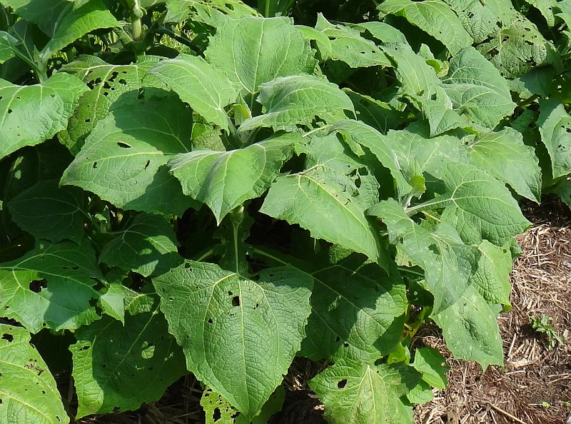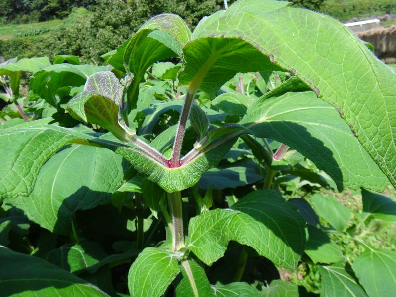 葉は直径約20センチの大きな心形〜卵形で、あらい鋸歯があり、