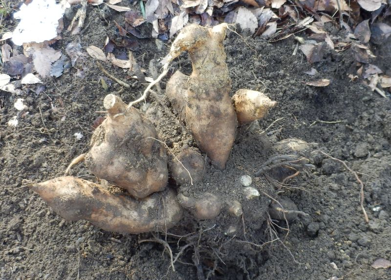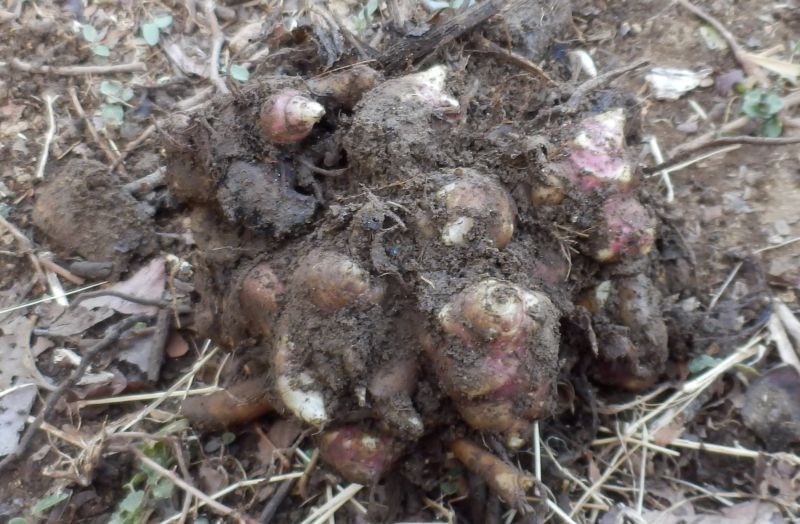 塊茎には芽がいくつもあり、その各々から太い茎が出て直立し、