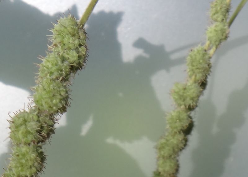 雌花序は茎先や茎の上方の葉腋につき、毛玉状である。(2017/8/12)