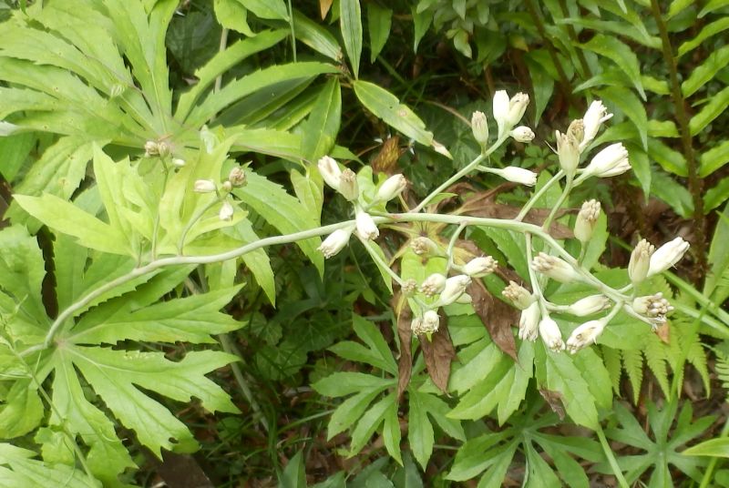 花茎の先に円錐花序がつく。花茎には小さい茎葉が互生する。