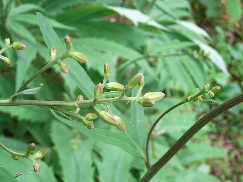 年数がたつと花茎を出して、茎葉を互生させ、その葉柄は茎を抱く。