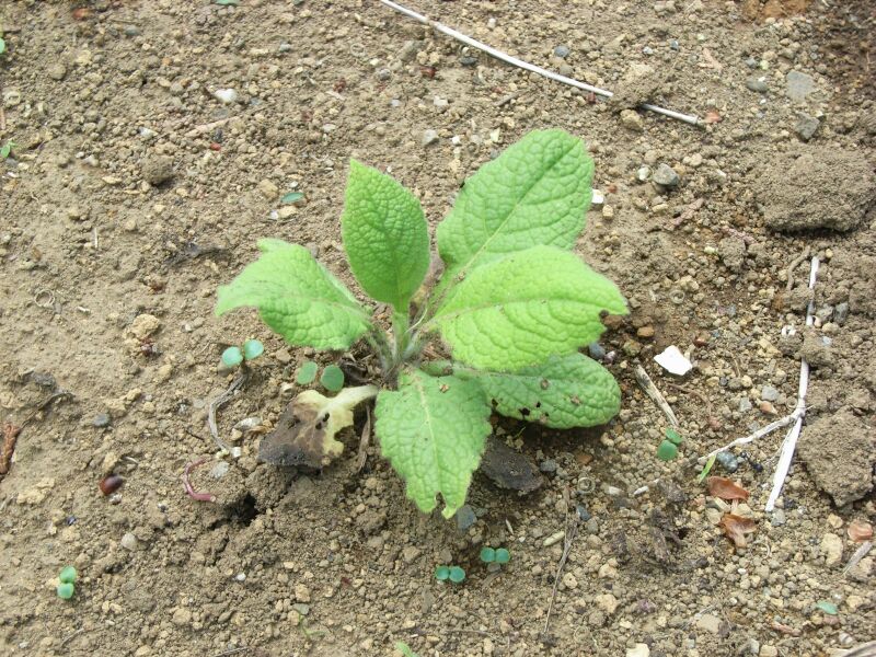 根生葉と下部の葉は広楕円形〜長楕円形で、薄くて短毛がある。
