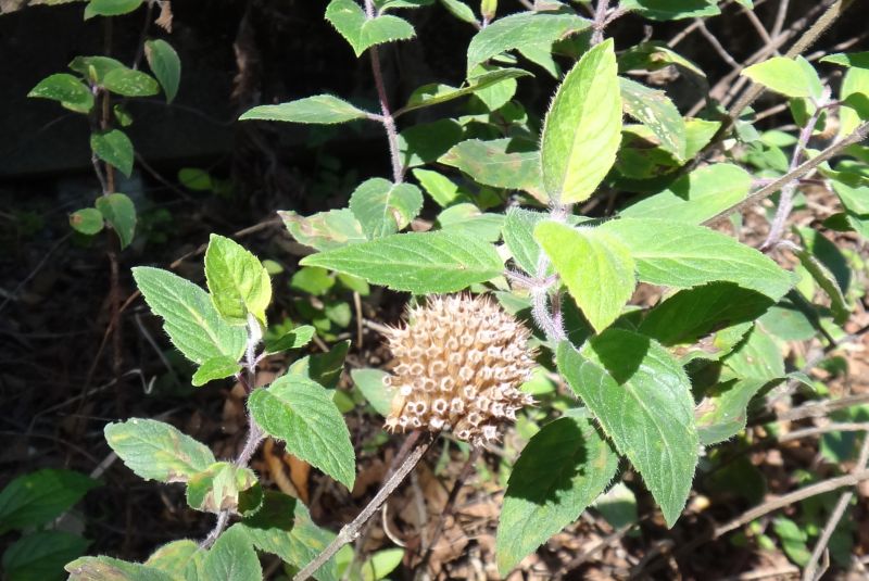 丸い集合果ができる。葉と茎に軟毛がある。(2016/10/15)
