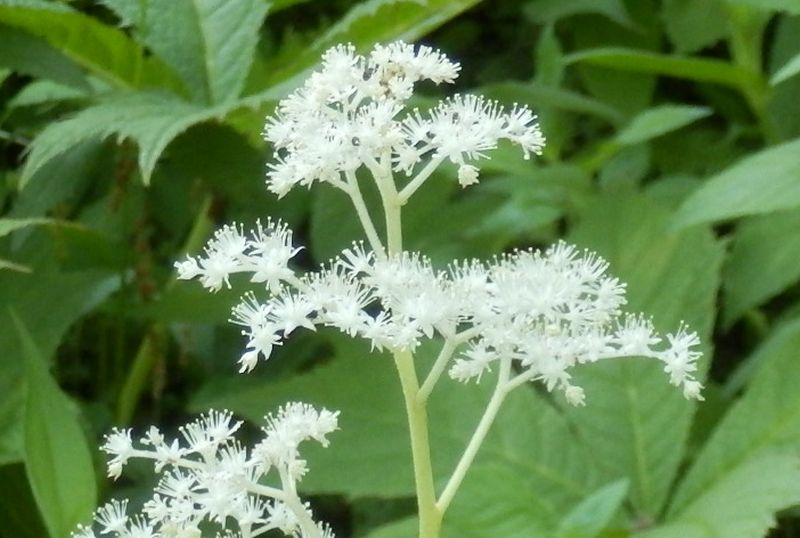 直径6〜8ミリの白い小花が密に咲くが、花弁はなくて、