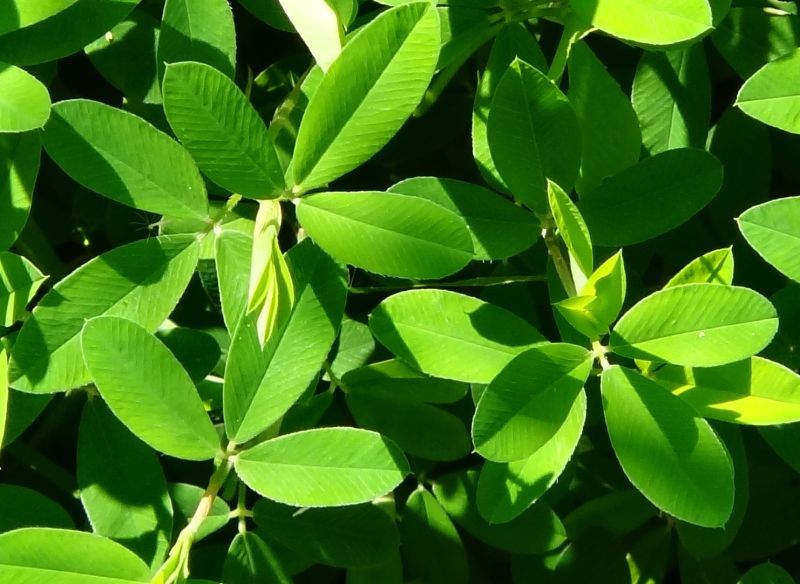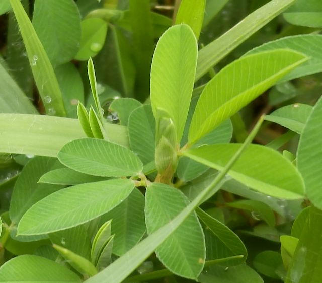 葉は3出複葉で互生し、小葉は先の丸い長さ約1.5センチの長楕円形で、